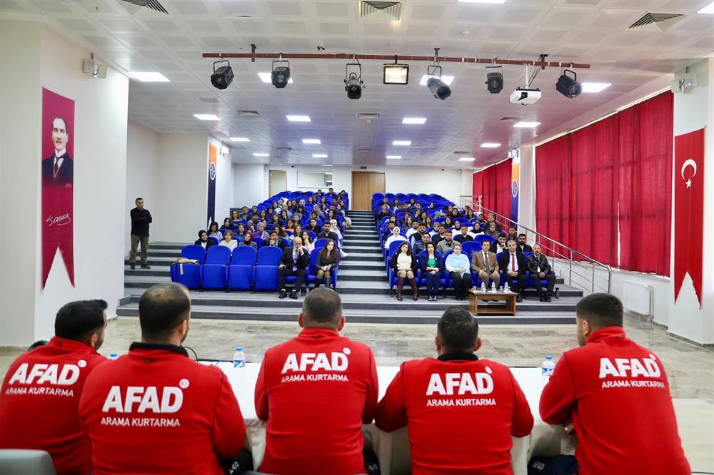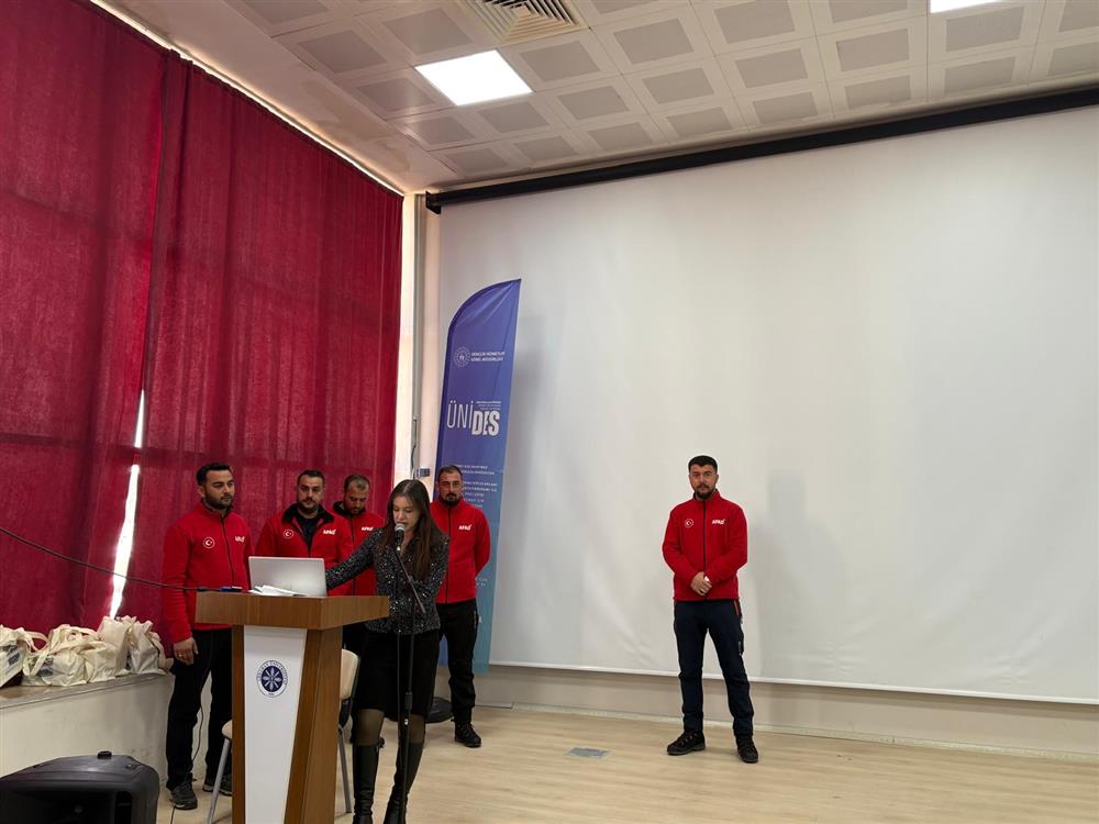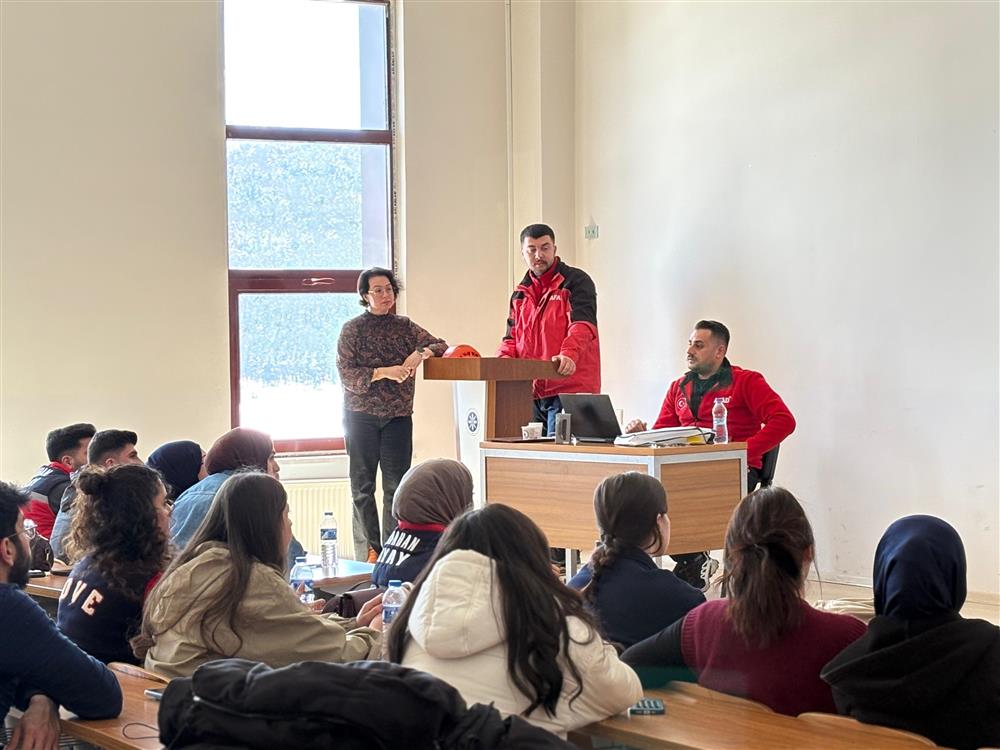 Kahramanmaraş İl Afet ve Acil Durum Müdürlüğünden üniversitemize gelen misafir eğitmenler tarafından öğrencilerimize teorik ve uygulamalı eğitimler gerçekleştirildi.